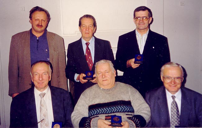 No kreisās,sēž : Uldis Strautiņš, Jānis Vitomskis, Vilnis Strautiņš, stāv: Aivars Kažoks, Zigurds Dauga, Juris Saksis.
